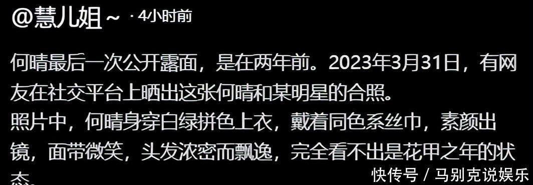 然而,没想到的是,在25年的5月份,在朱媛媛去世时有网友就爆料何晴的病情出现了恶化,癌细胞出现了扩散。但是有网友就为她祈福,没想到最终还是没有逃脱病魔。最后也是祝何晴一路走好,在天堂再无病痛。