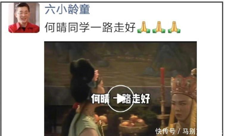 何晴离世后,有不少和他合作过的演员发文或私下发朋友圈悼念。六小龄童和何晴不仅合作过《西游记》,两人还是浙江昆剧团学员班小班同学。在得知何晴去世后,六小龄童在朋友圈发文“何晴同学,一路走好”
