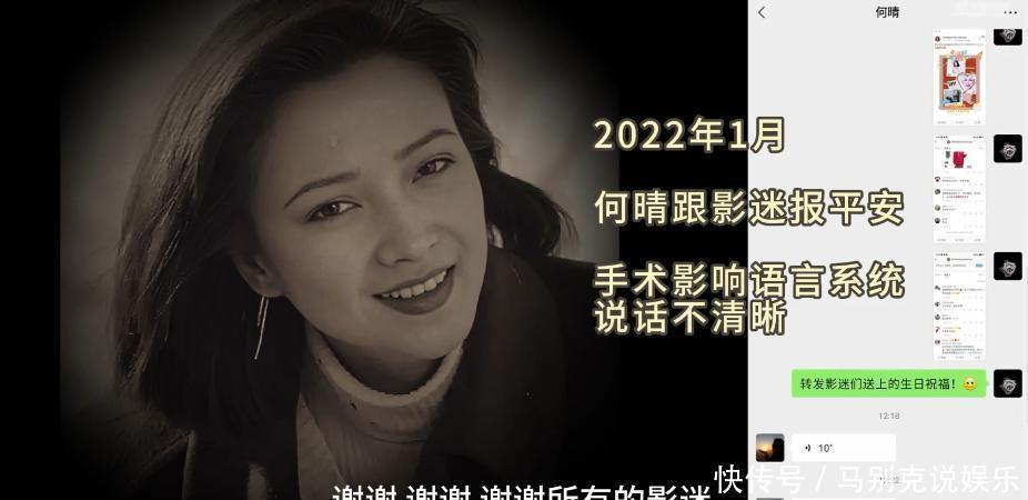 而何晴也通过语音感谢粉丝的祝福,并向影迷报平安。在其中的一段语音中,何晴不停感谢所有影迷的祝福,并称我爱你们。不过,这段语音能明显听出,何晴说话有些停顿和含糊不清,让人心疼。主要是因为手术影响了她的语言系统,导致说话不清楚。