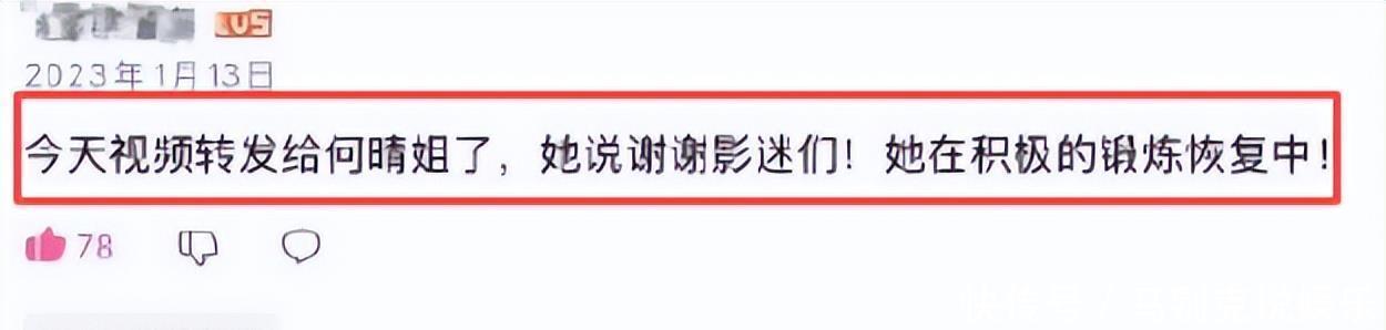而在23年1月13日,何59岁生日的时候,在她的粉丝超话,也更新了一条动态。大粉称已经将大家的祝福转发给何晴,何晴称感谢影迷,称自己在努力锻炼中。